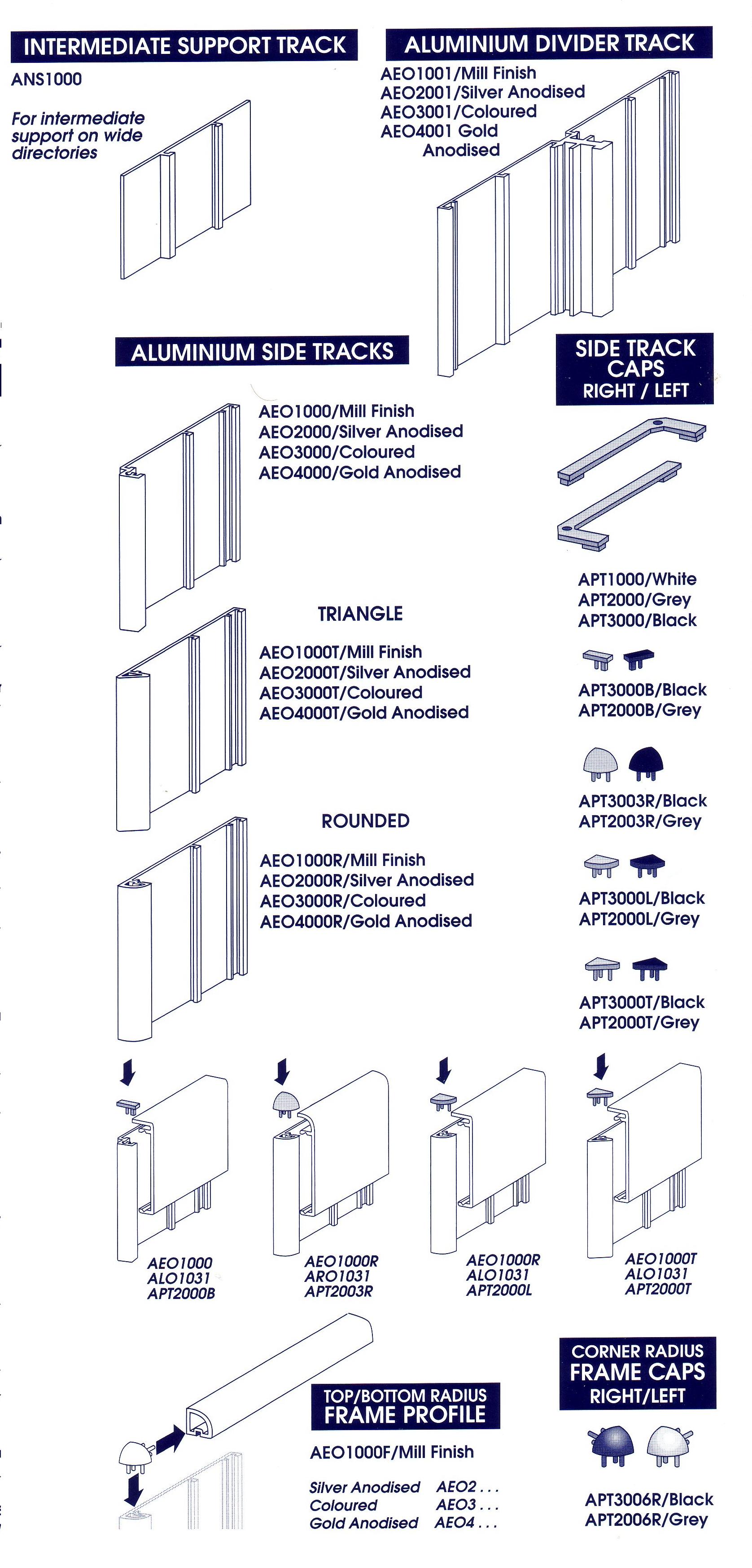 Hliníkové boční profily jsou vhodné pro větší cedule např. do vstupních hal a nebo pro mezipatrové cedule. Délka profilů je 2,5 bm.