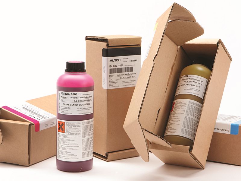 Inkoust Mutoh Universal MS je agresivnější, než eko-solventní inkoust, ale oproti předchozím generacím (MS, MS+) klade menší nároky na údržbu stroje a navíc nezapáchá.