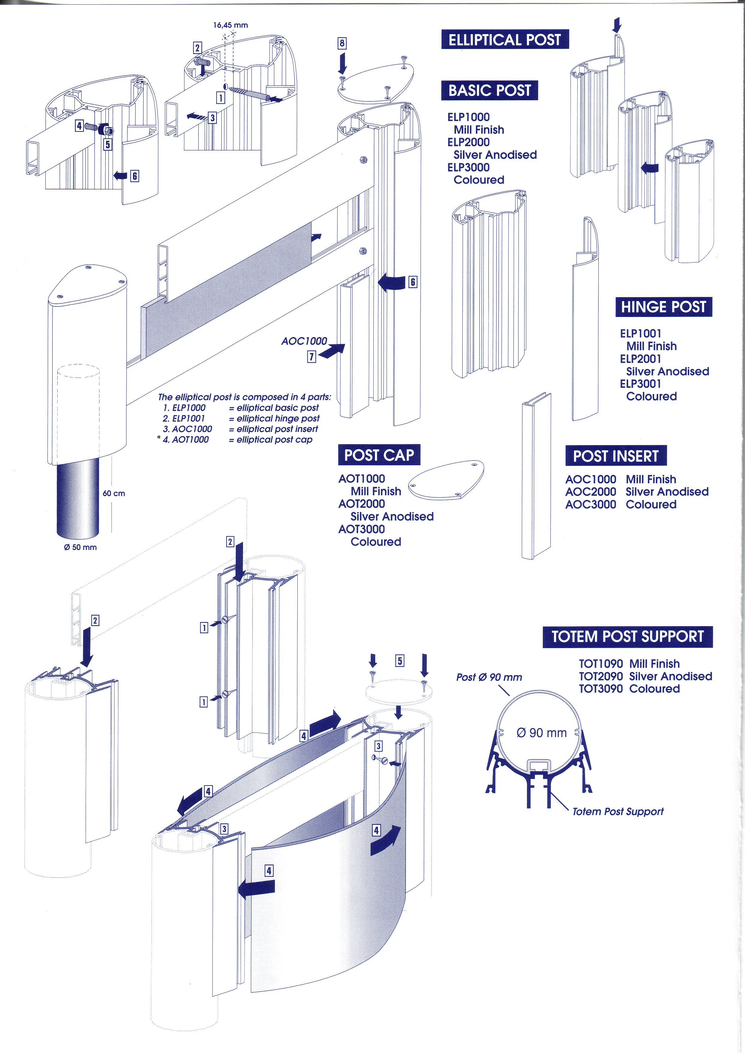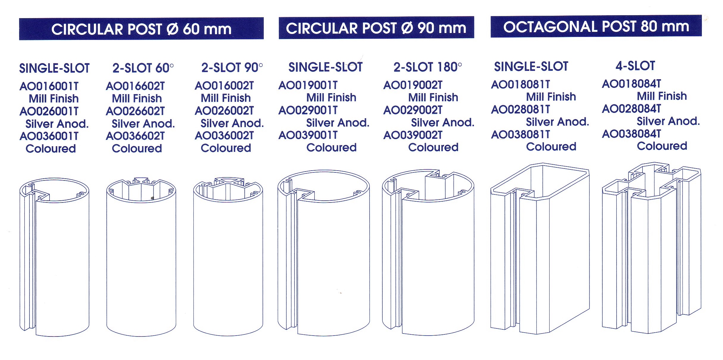 Pro uchycení příčných profilů je k dispozici kulatý a hranatý profil o průměru 60,80 a 90 mm. Délka profilu je 6 metrů.