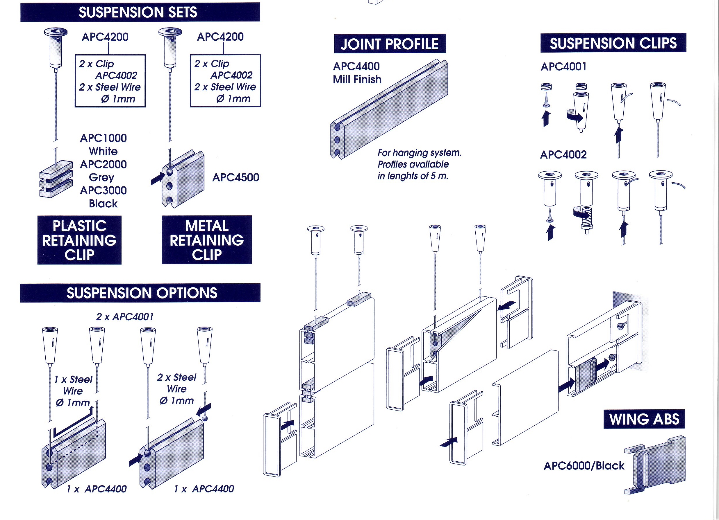 | APC4101 | Sada pro závěsný systém - 2 x konický úchyt + 2 x lanko v délce 1 m | 601,00 |